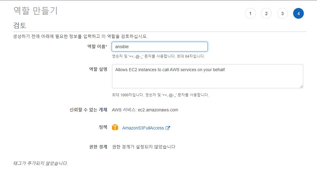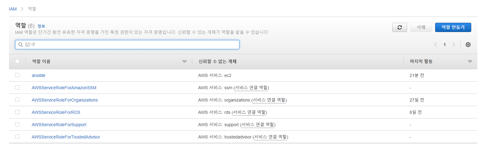 IAM역할로 연결되는데 여기에서 역할 만들기를 눌러준다