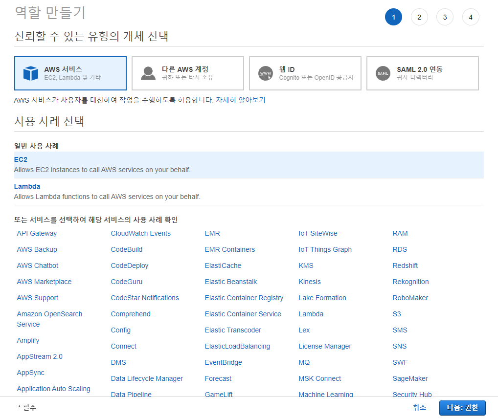 AWS 서비스 EC2를 선택하고 다음