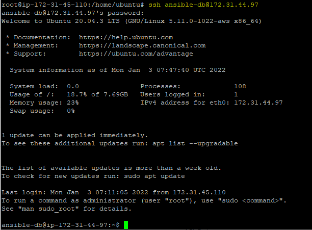 ansible에서 db1로 연결