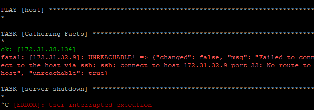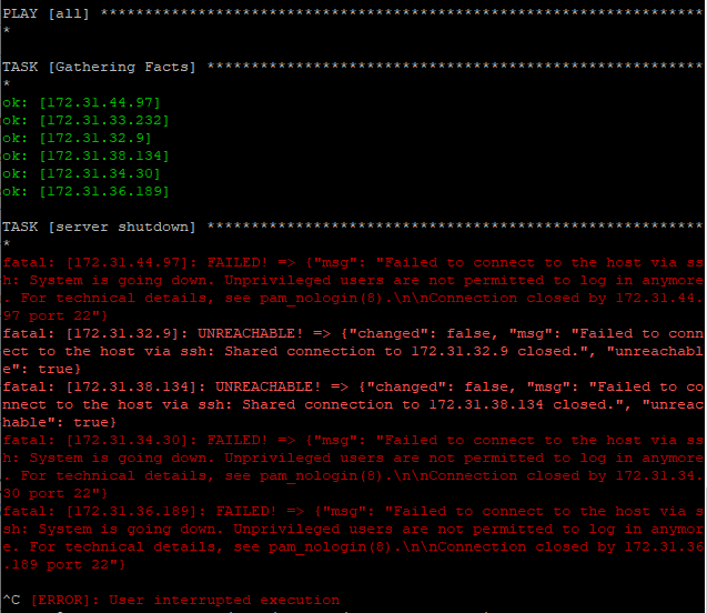 ansible-playbook stop.yml 으로 playbook을 실행해준다