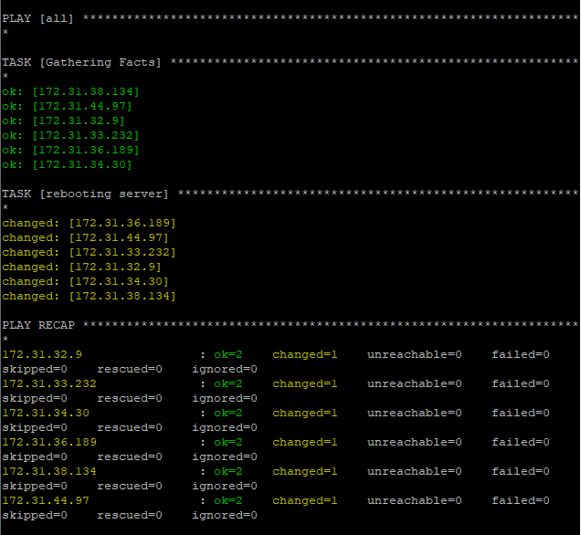 ansible-playbook reboot.yml 으로 playbook을 실행해준다