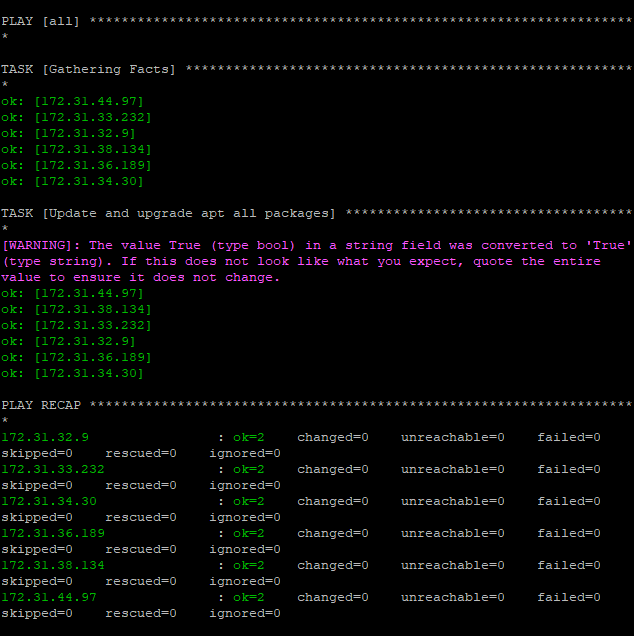 ansible-playbook update.yml 으로 playbook을 실행해준다