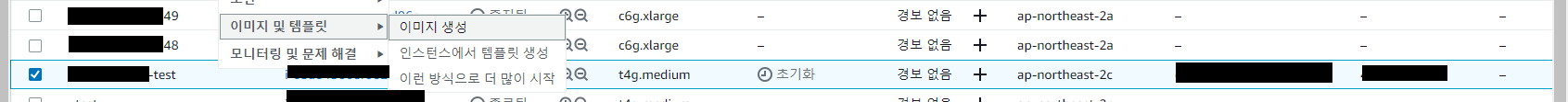 새로 만든 인스턴스를 찾아서 우클릭 -> 이미지 및 템플릿 -> 이미지 생성