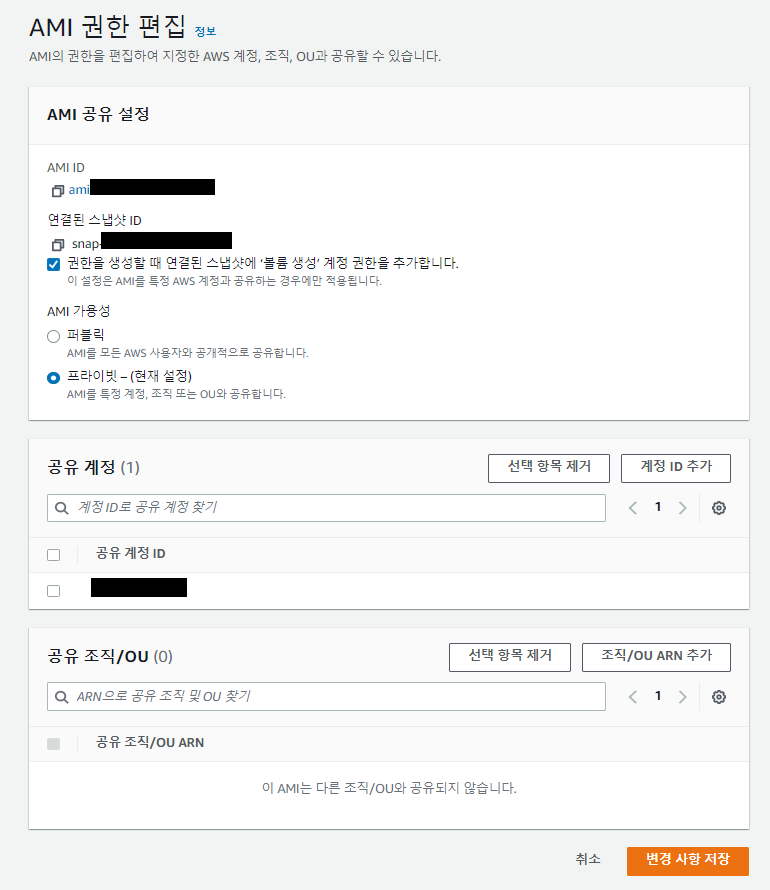 AWS에서 공유받은 ami를 다시 공유해볼 예정이다