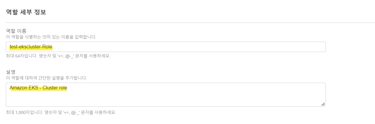역할 세부 정보 -> 이름정해주고 설명을 적어준다
