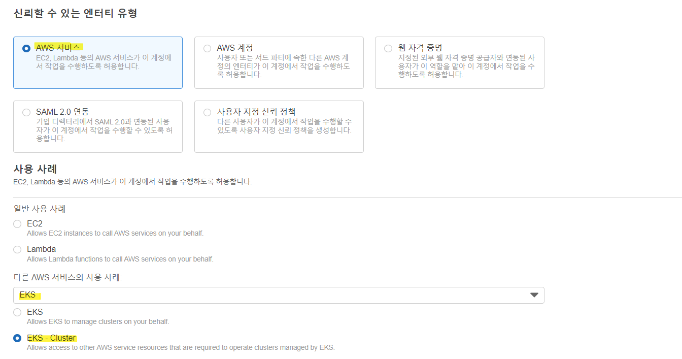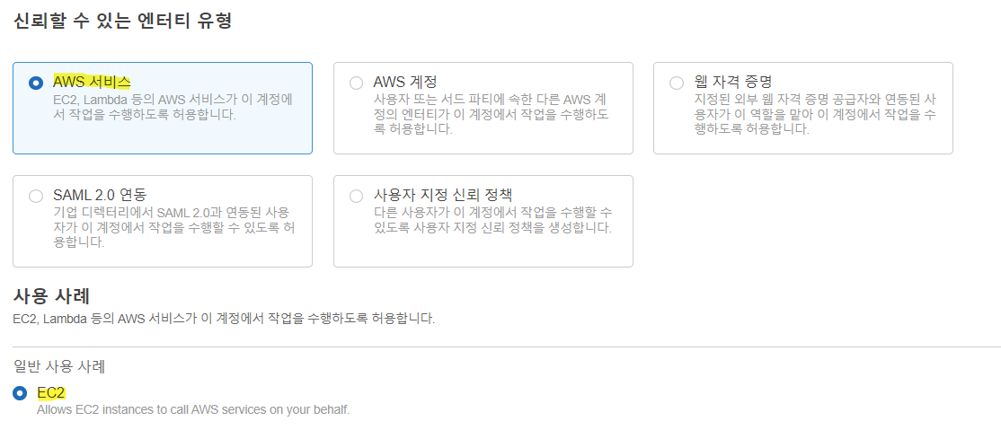 신뢰할 수 있는 엔터티 유형 -> AWS 서비스