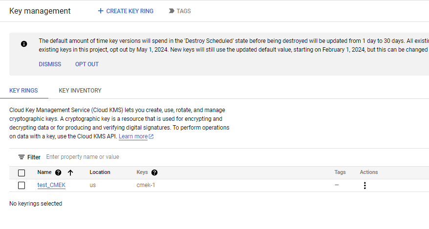 확실히 키를 미리 생성해야지 CMEK를 사용할 수 있구나를 알게 됨