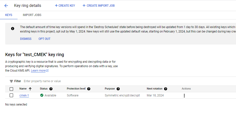test_CMEK에 들어가서 생성된 cmek-1키도 있는지 확인해줌