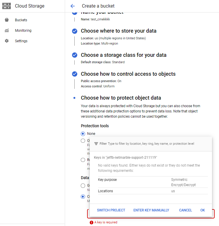 스토리지를 새로 만들어서 무작정 Customer-managed encryption key를 만들어보려고 했으나 실패했다