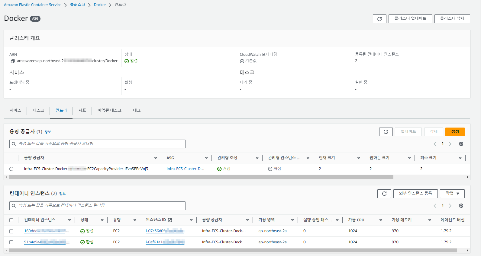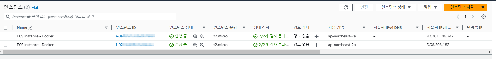 EC2로 들어가보면 2개의 인스턴스가 동작중임을 알 수 있다