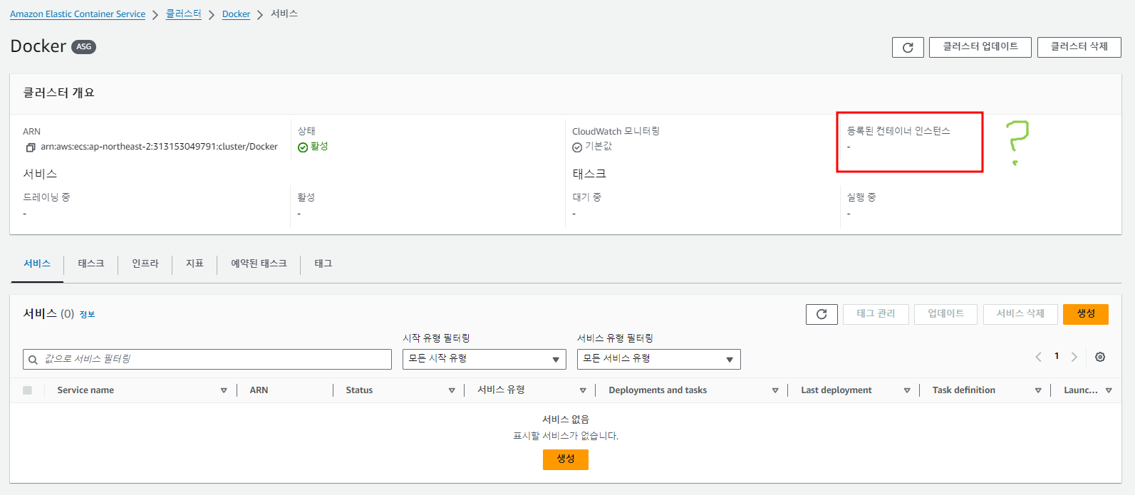 처음에 야무지게 클러스터 생성했는데 인스턴스 아무것도 안나와서 너무 당황했었다