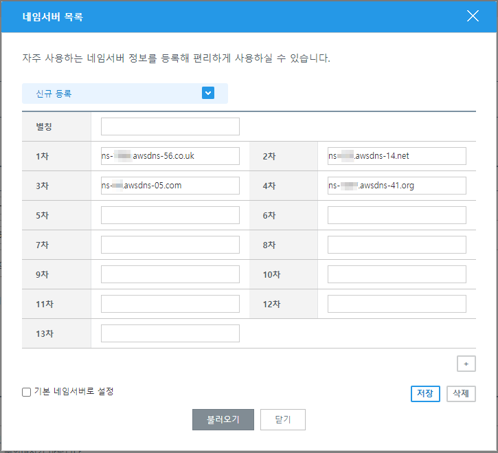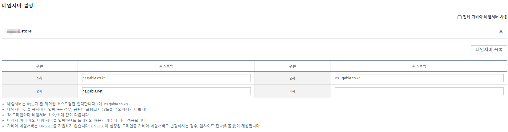 가비아에서 도메인 구매를 했기 때문에 네임서버 설정으로 가면 아래와 같은 화면을 볼 수 있다