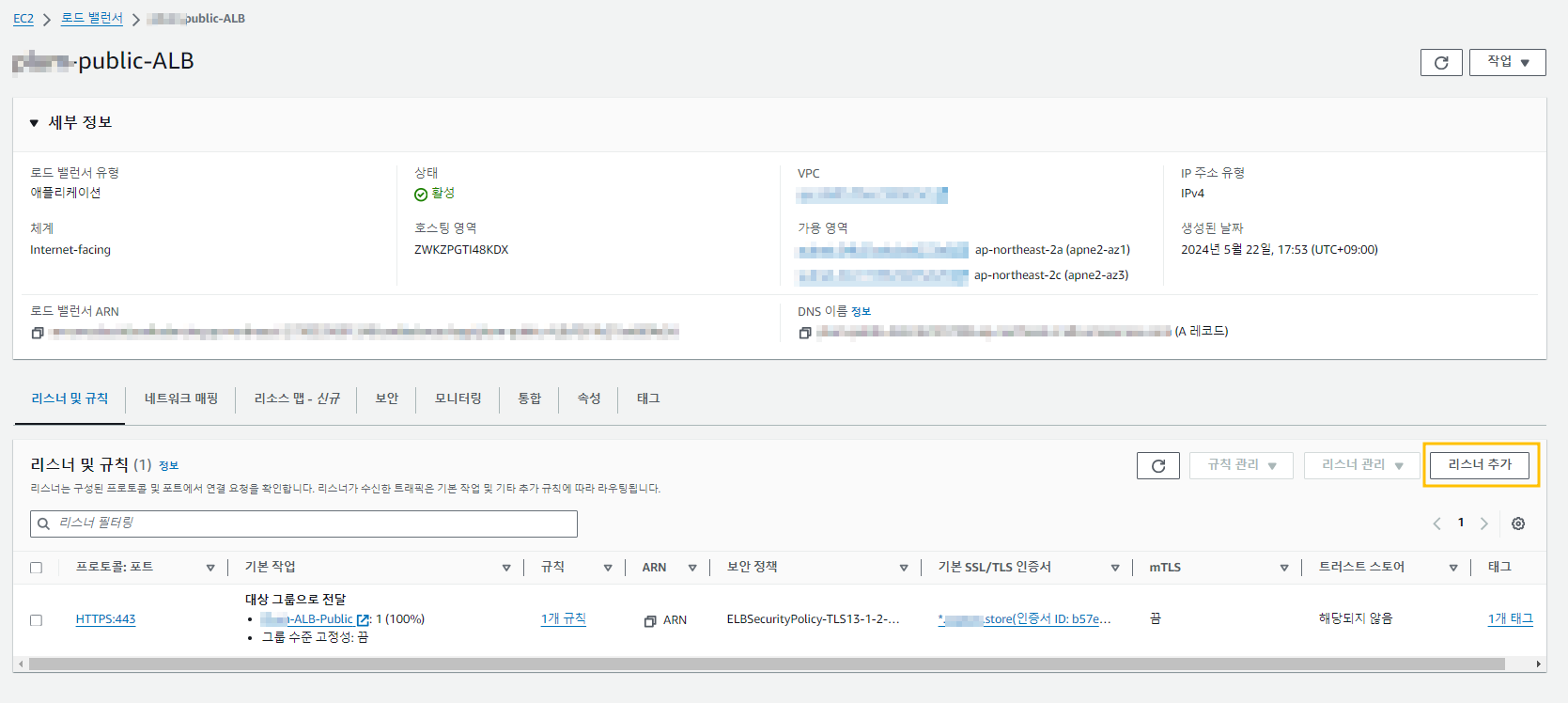 ALB 생성을 완료하고 인증서가 들어갔음을 확인한다