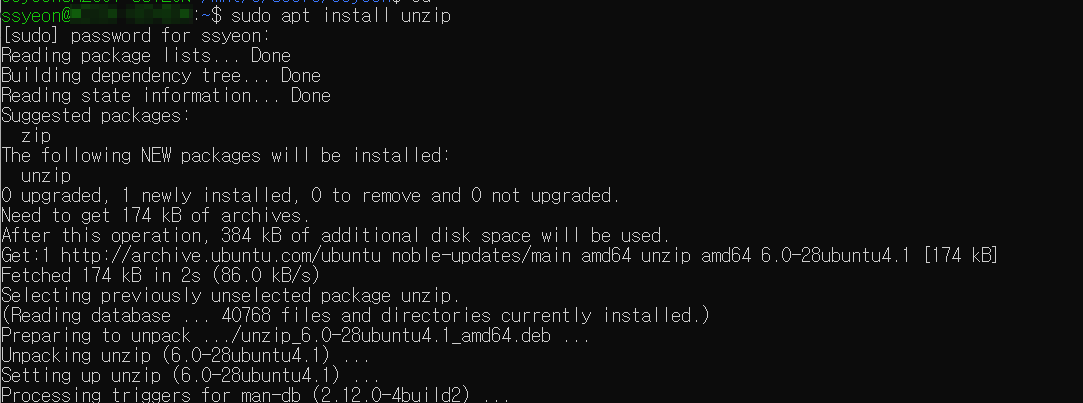 sudo apt install unzip