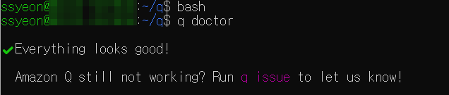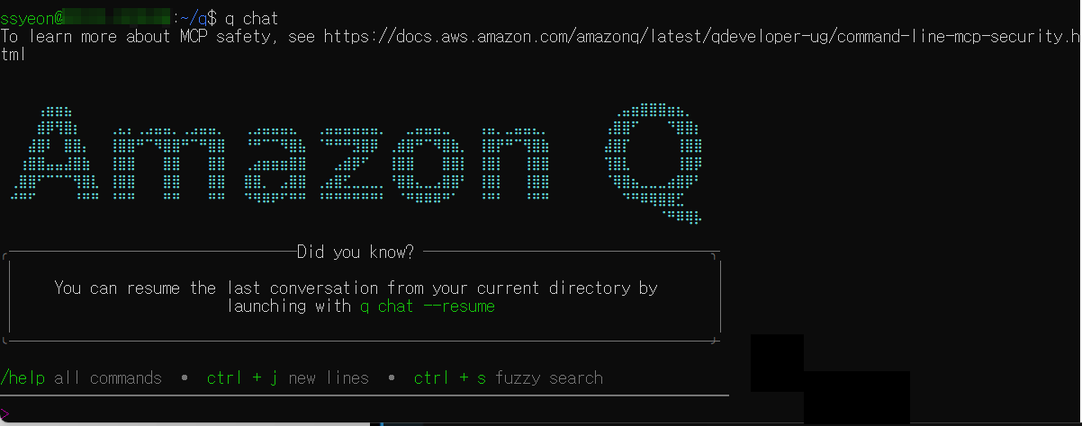 q chat 명령어를 통해서 Amazon Q를 시작할 수 있습니다~!