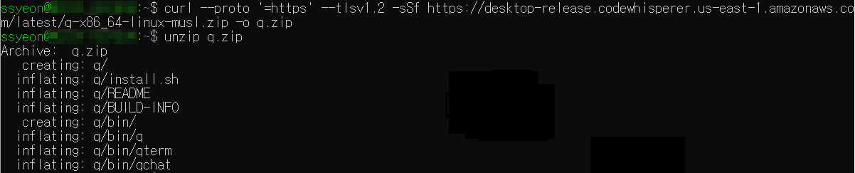 Amazon Q를 설치해주기 위해서 설치파일을 다운받고 압축을 풀어줍니다.
