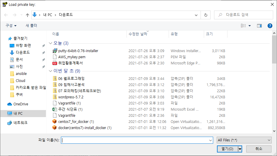 혹시 안된다면 .ppk 확장자가 잘 설정되어 있는지 확인해준다