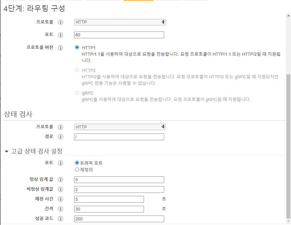 라우팅을 구성해주고 고급상태 검사 설정에서 트래픽 포드 설정