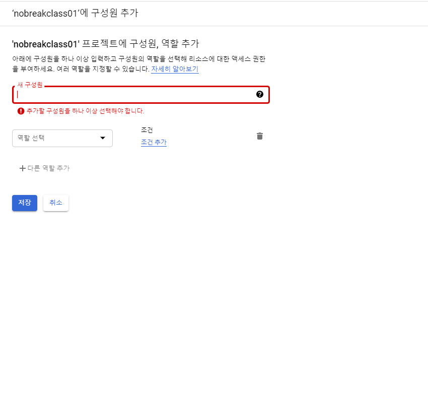 새 구성원 추가 부분에 추가할 구성원의 이메일을 적는다