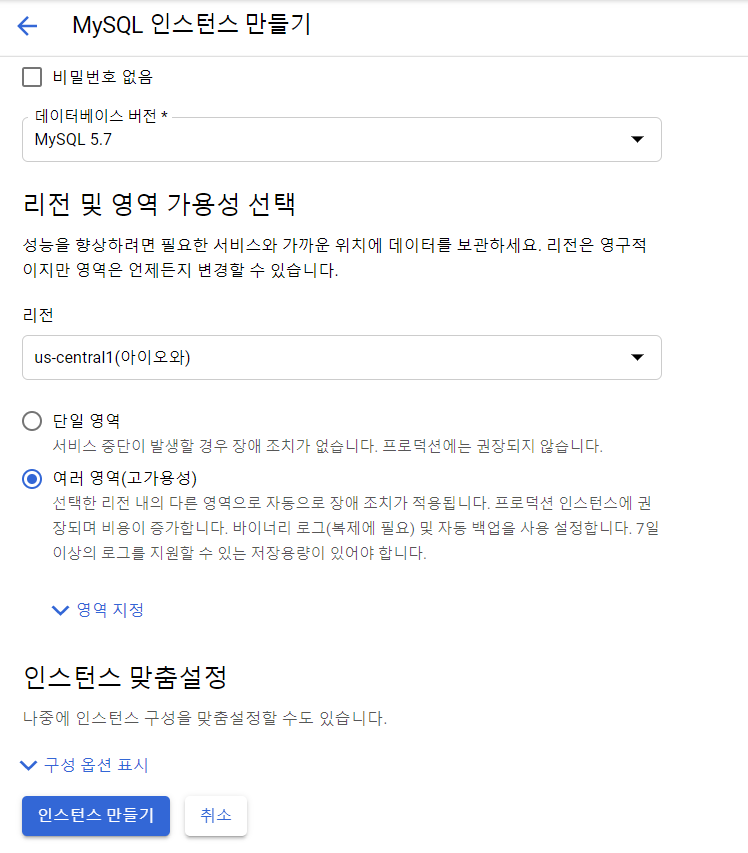 인스턴스 이름을 적어주고 비밀번호를 적어준다