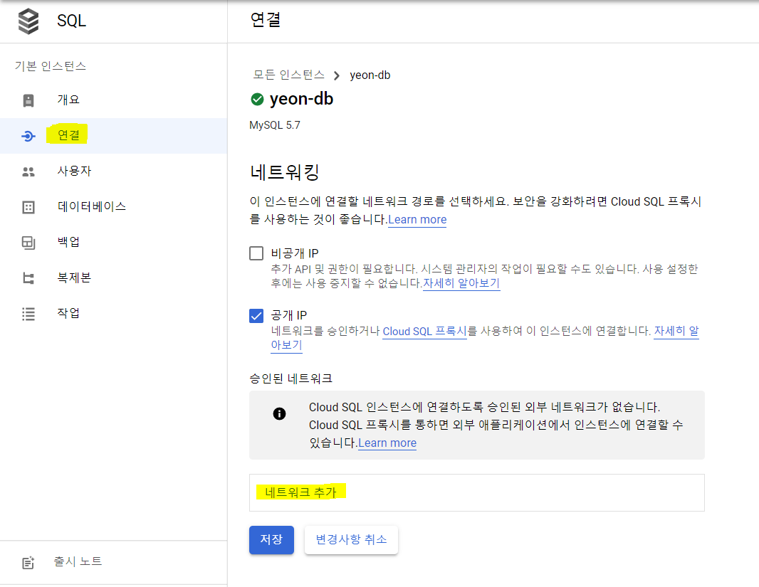 보안상의 문제로 외부에서 해당 인스턴스를 접근할 수 없을 때 이를 외부 허용으로 바꿈