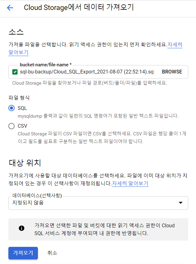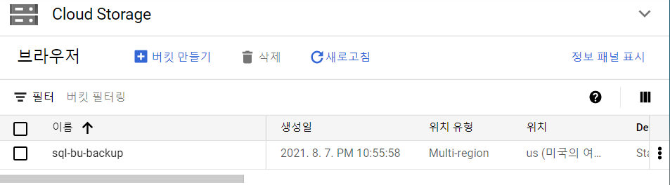 | [GCP] 버킷 만들기 실습 (0) | 2021.08.06 |
