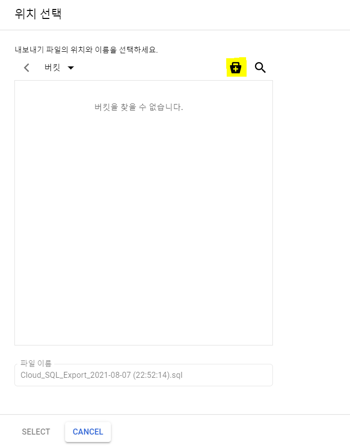 버킷을 선택해주고