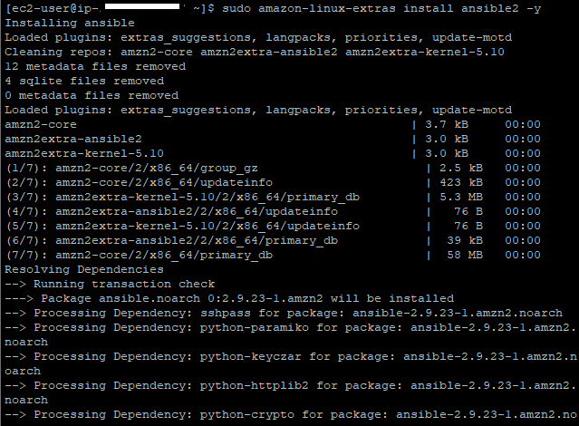 sudo amazon-linux-extras install ansible2 -y 명령어로 ansible을 설치해준다
