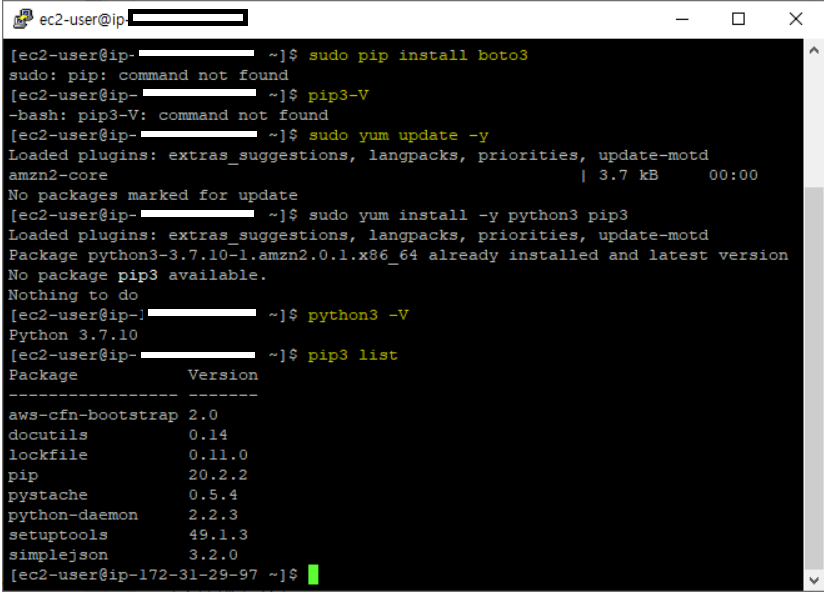 pip으로 boto 설치해서 진행하려고 했는데 계속 설치할 수 없다고 나온다