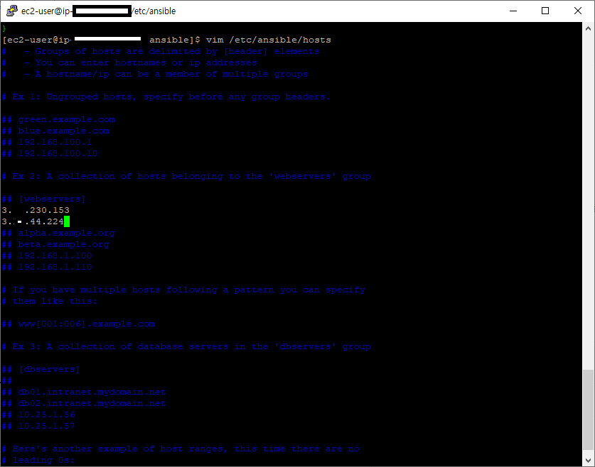 sudo vim /etc/ansible/hosts 이렇게