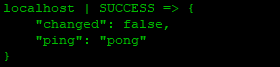 통신이 잘 되는지 확인하기 위해서 ansible localhost -m ping 을 입력하면 아래와 같은 화면이 나타나면 성공!